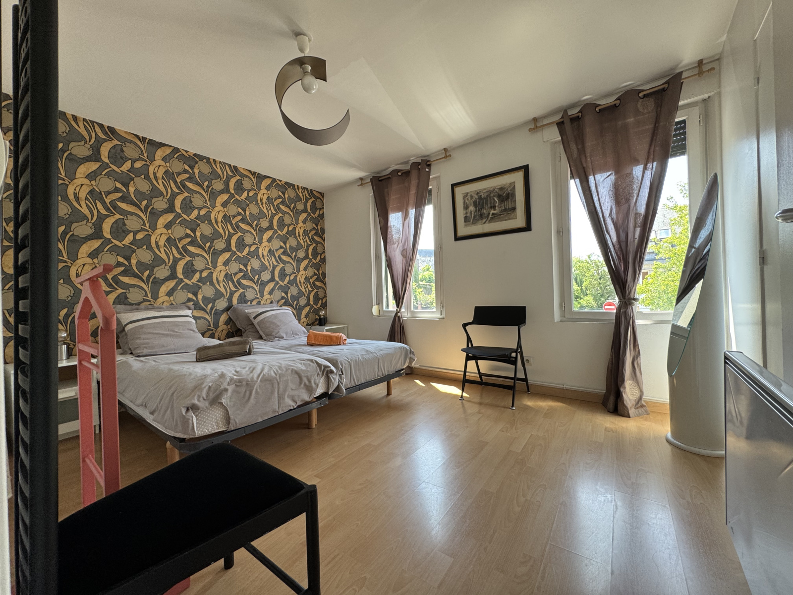 Cet appartement loué meublé (43.09m²hab.) comprend une entrée sur le salon avec vue sur la somme et le parc st pierre, cuisine américaine entièrement équipée, coin repas, une pièce d'eau avec vasque et douche (Machine à laver), wc séparé, une belle chambre avec vue Cathédrale.